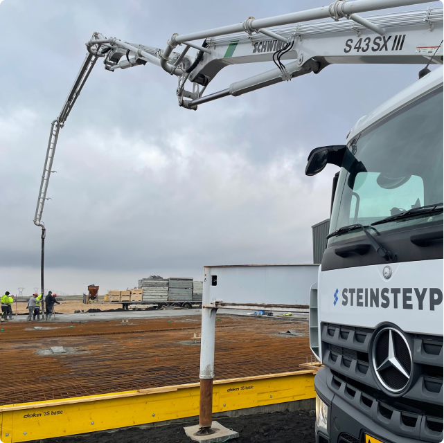Steinsteypan býr yfir glæsilegum tækjaflota og mannauðurinn er með áratuga reynslu í öllu sem viðkemur steypu. Við tökum að okkur flest verk sem snúa að framleiðslu og afhendingu á steinsteypu.